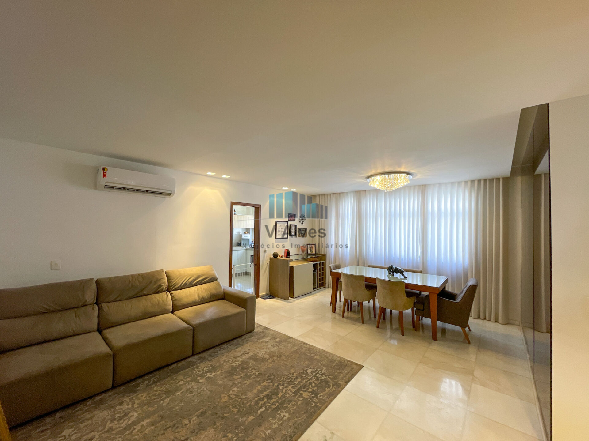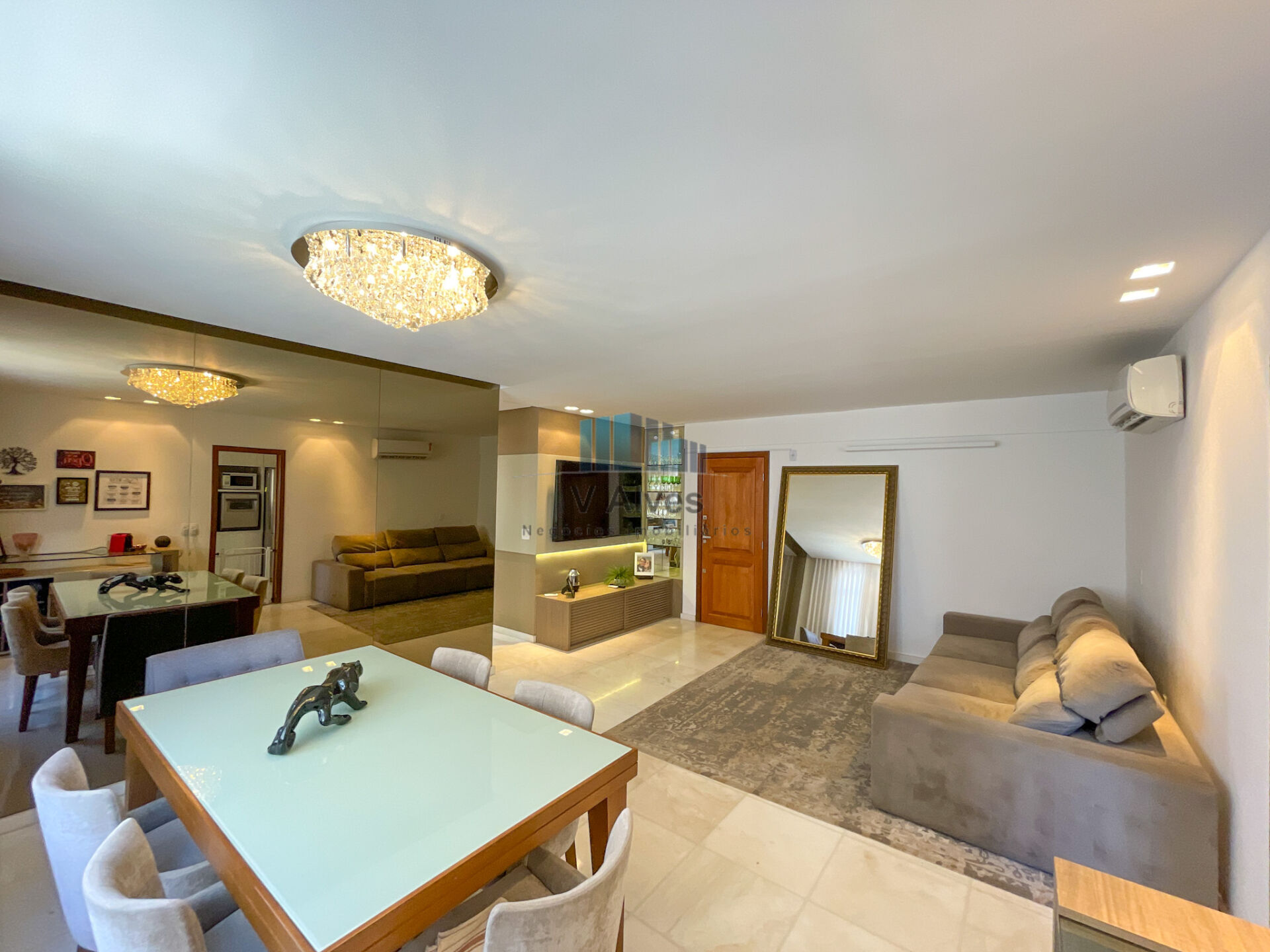 🔸Sala ampla para 2 ambientes, com lindo projeto de iluminação e piso em mármore.