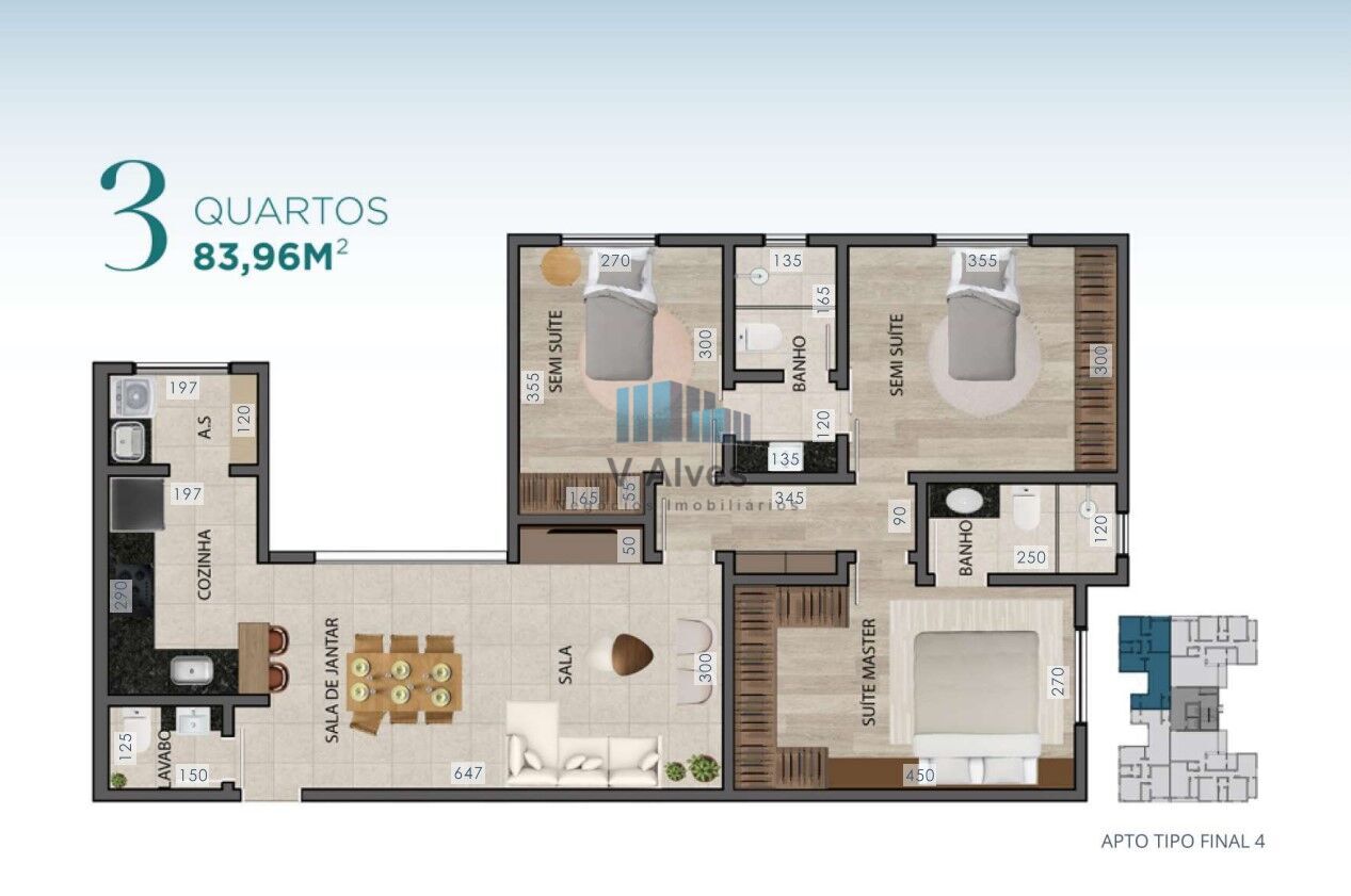 Com uma área total de 83,96m², este imóvel se destaca não apenas pela sua localização privilegiada, mas também pela proximidade com uma ampla variedade de serviços essenciais.