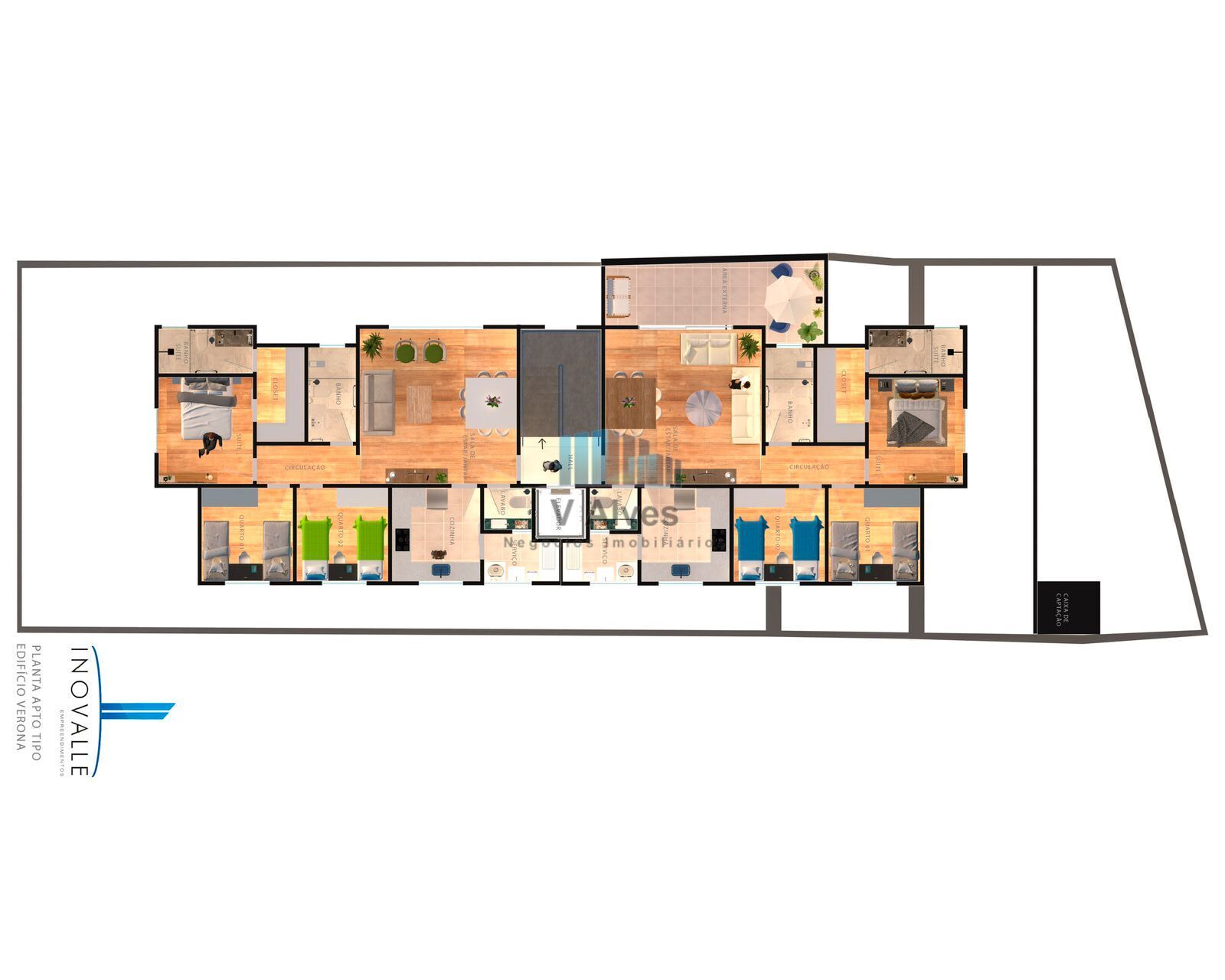 - Dois apartamentos por andar.