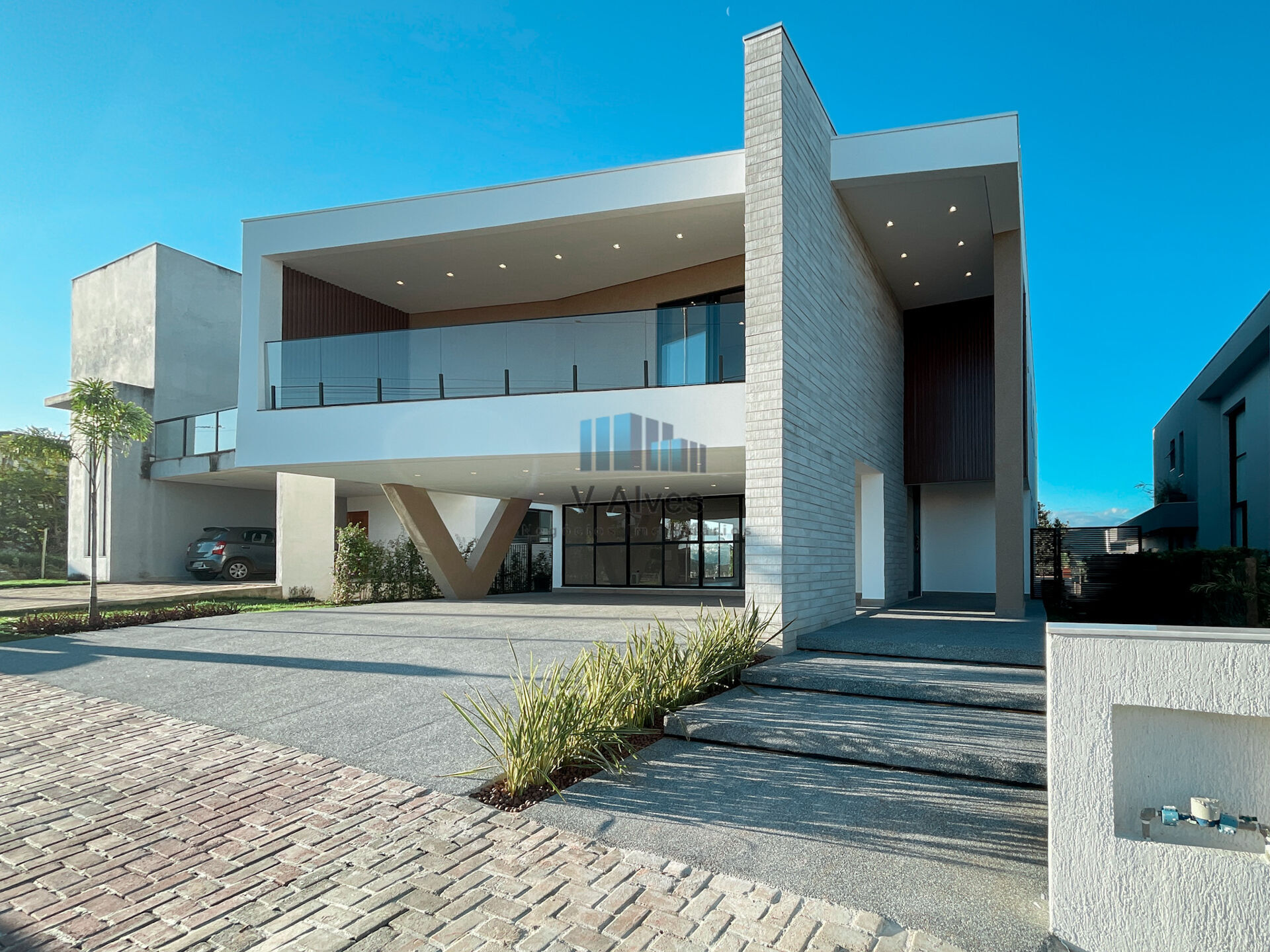 Garagem coberta e livre para 3 carros grandes;